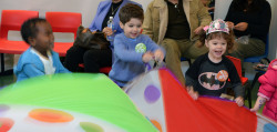 One of the many highlights was early each kid got to stand in the middle of the parachute and get Happy Birthday sung to them. Delilah is not one to enjoy being the center of attention so when it came to her turn she quickly said no and started to cry - taking after my childhood where rumor has it I would cry whenever Happy Birthday was sung to me.