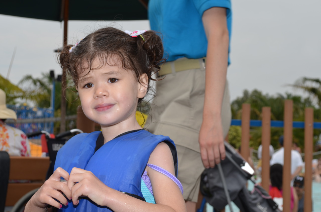 We spent all of about 20 minutes within the water park (probably more time getting changed to/from bathing suits than actually playing.) Her face in the second page really says it all.