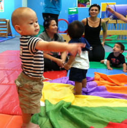 Jackson is taking classes at the local Gymboree, which is like an indoor play gym. The classes are led by a teacher who sings songs and sets up activities and obstacles for the kids. Jackson is taking classes with his best friend and twin (don’t they look alike??), Emily, who lives just a few houses down the street and is one month younger. Jackson’s favorite part of class is bubble time.