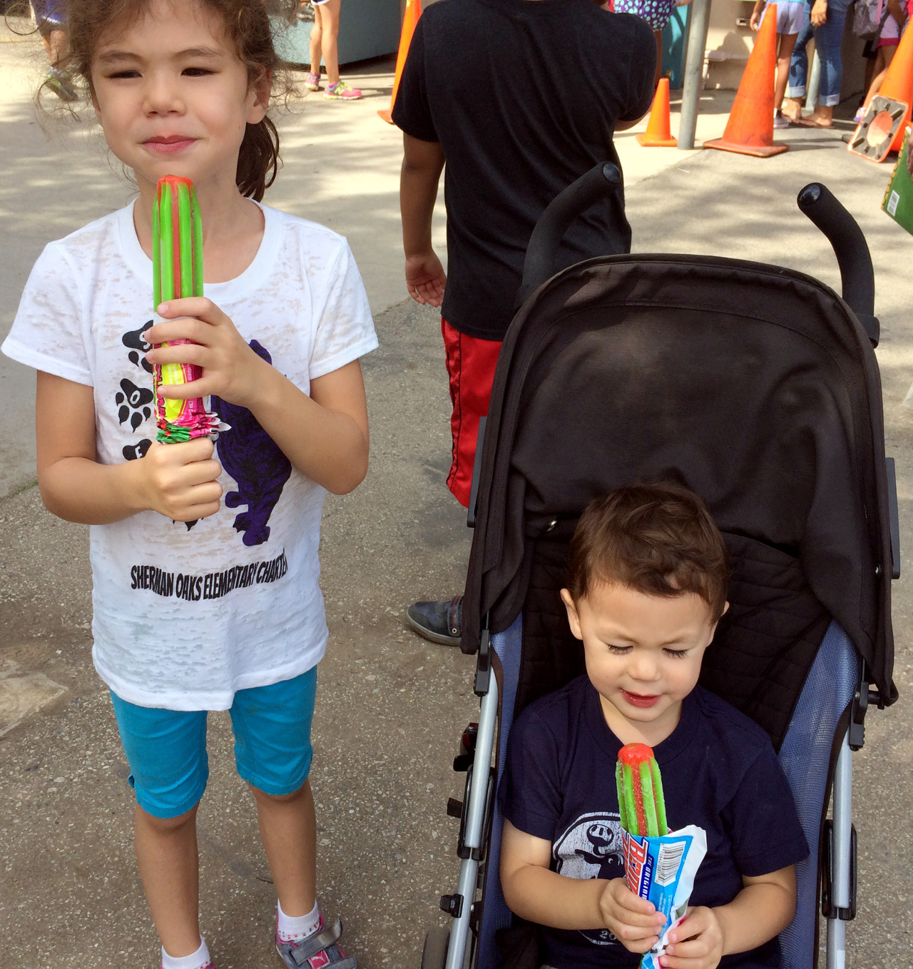 The award allowed her to jump to the front of the loooonnnnnggggg ice cream line for a free treat after school!! It was sweltering Friday afternoon, so Mommy and Jackson were grateful that the award allowed us to cut, too!