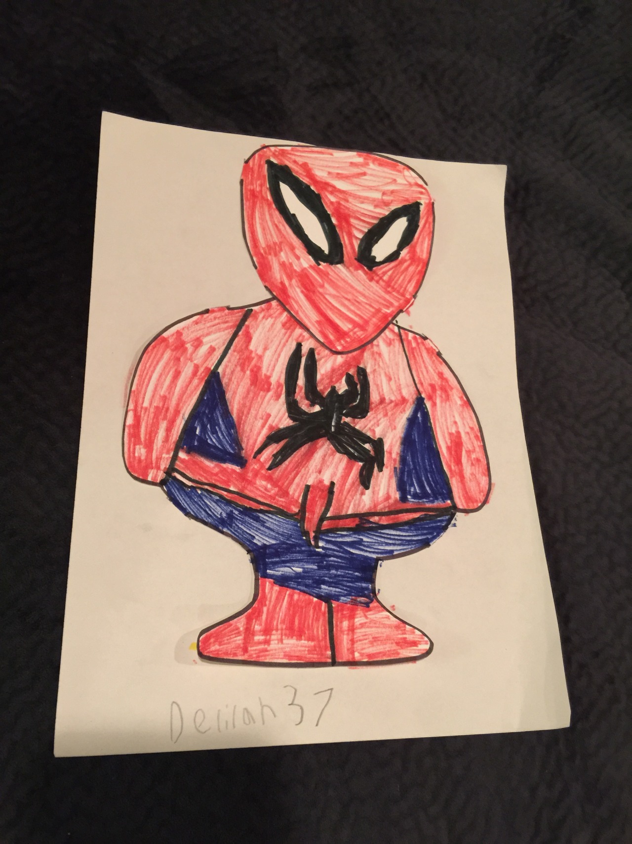 So, DeeDee asked her what she wanted to do and Delilah decided a Spiderman turkey. They created this cool Spider-turkey costume to overlay the turkey, using tabs to keep it in place (like paper dress-up dolls). DeeDee prepped and Delilah decorated.