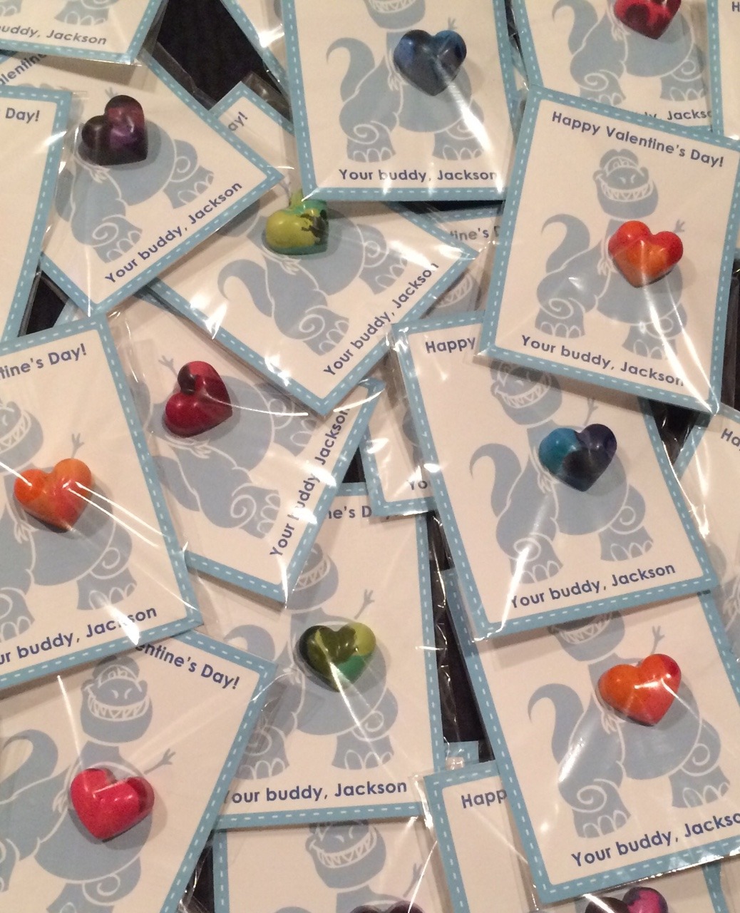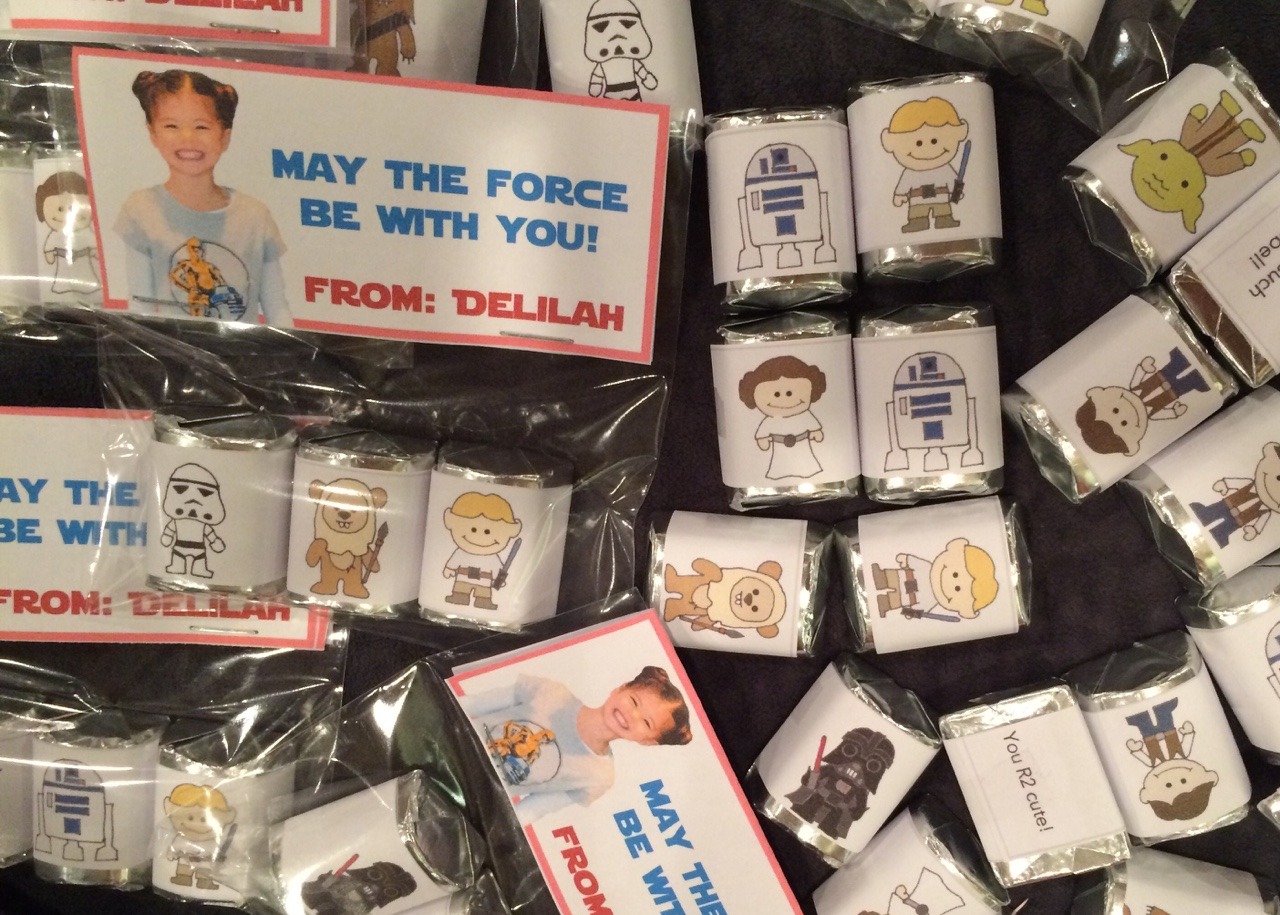 This year for the kid’s Valentines cards, Jackson wanted a dinosaur theme, and Delilah wanted a Star Wars theme. So we made heart crayons for Jackson and cute Star Wars-wrapped chocolates for Delilah. The kids were thrilled.