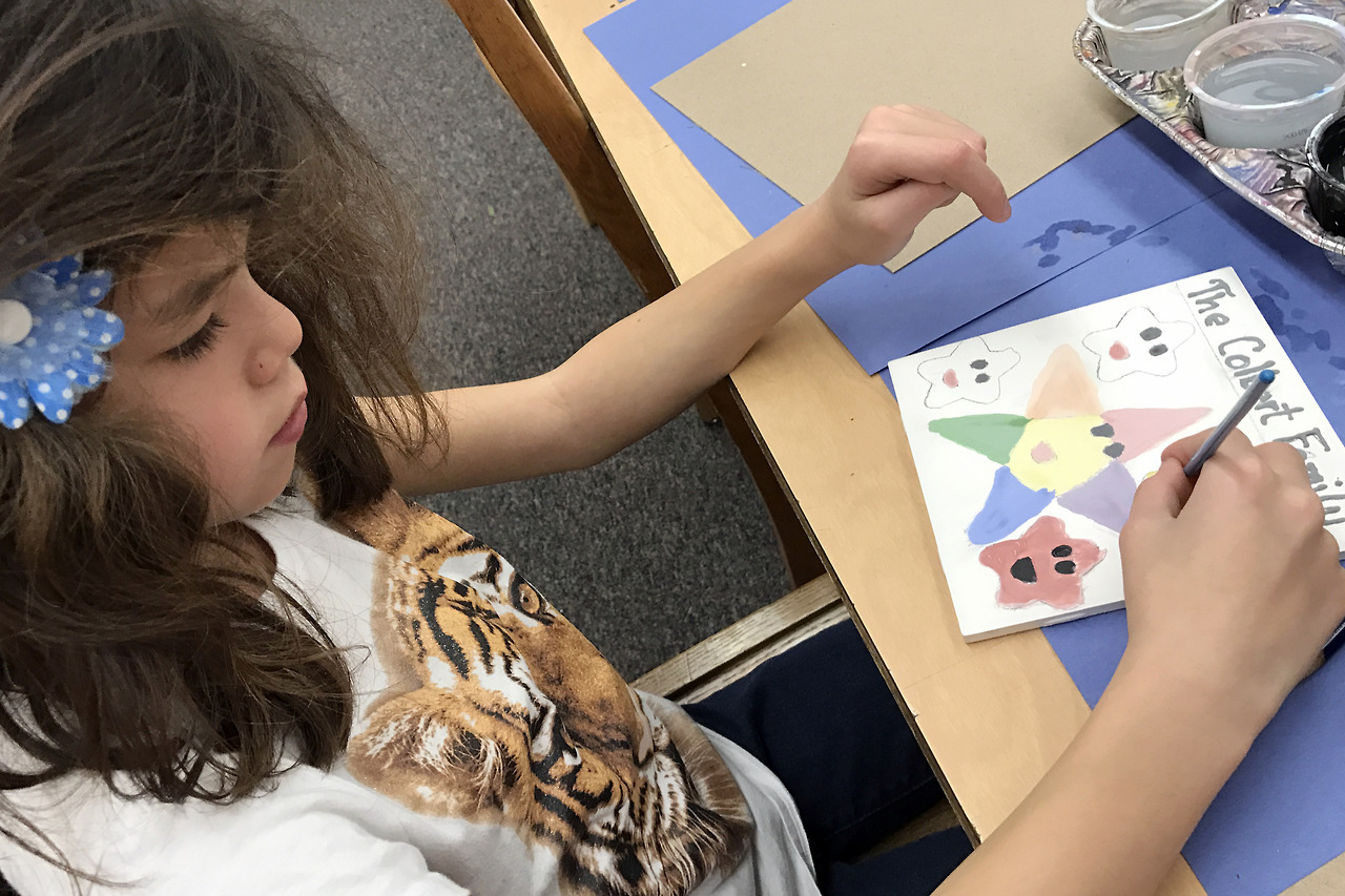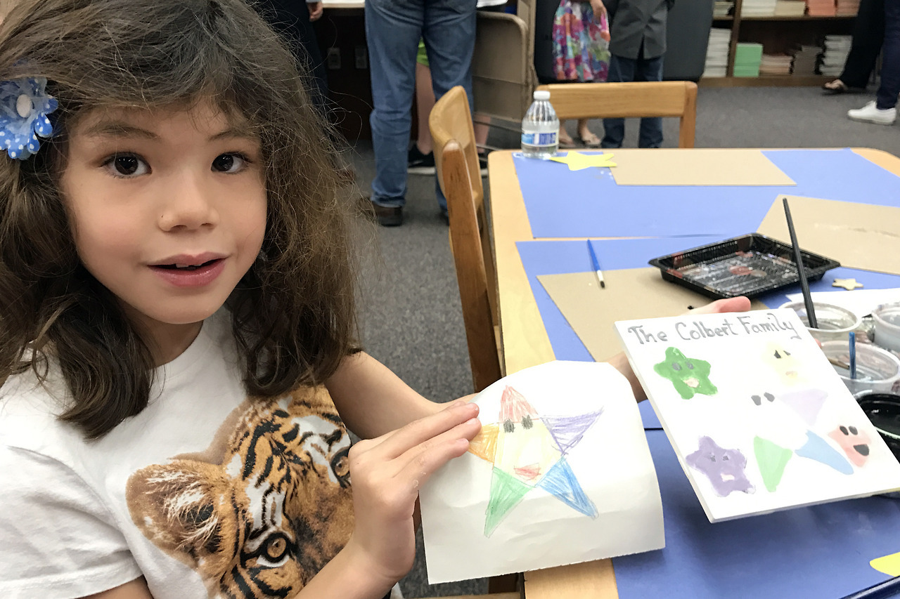 With a donation to Delilah’s school, you get invited to a tile party to decorate a family tile. This year’s theme was stars. Delilah drew a rough draft of what she wanted our family tile to look like, then got to work! We then went and found the tile she made last year, where the theme was hearts.