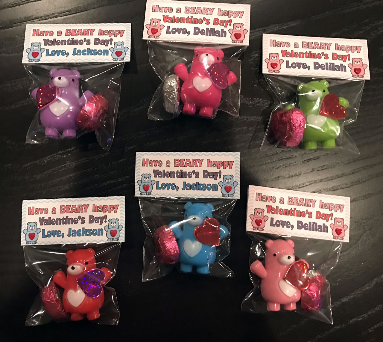 The kids loved the little bears they gave to their classmates for Valentine’s Day. They’re pros at the assembly line, while DeeDee puts the finishing touches on the packaging.