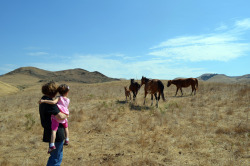 We spent Sunday visiting a ranch that was full of horses - both big (with babies) and small (mini-ponies.) As Saturday’s wiffle ball tournament was held at a barn, Delilah had become quite friendly with the horses there so having a field full of them was great fun for her.