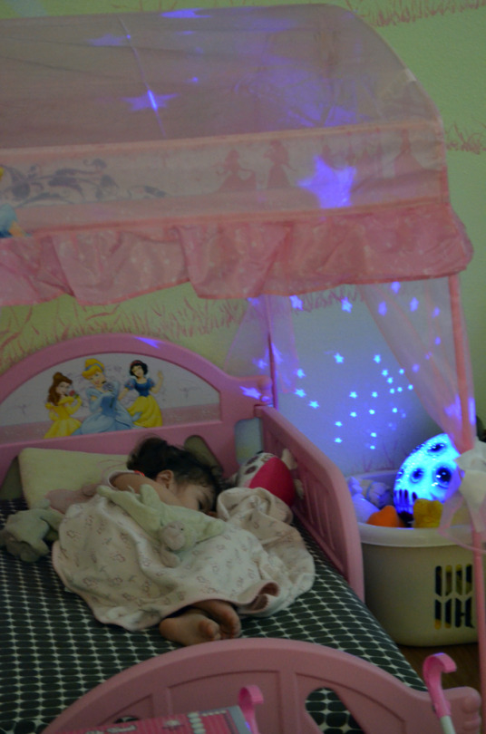 We have started the migration of Delilah’s room from a nursery into a little girl’s room. One of the first changes we made was to have her pick out her first toddler bed online - of course she picked a princess bed.